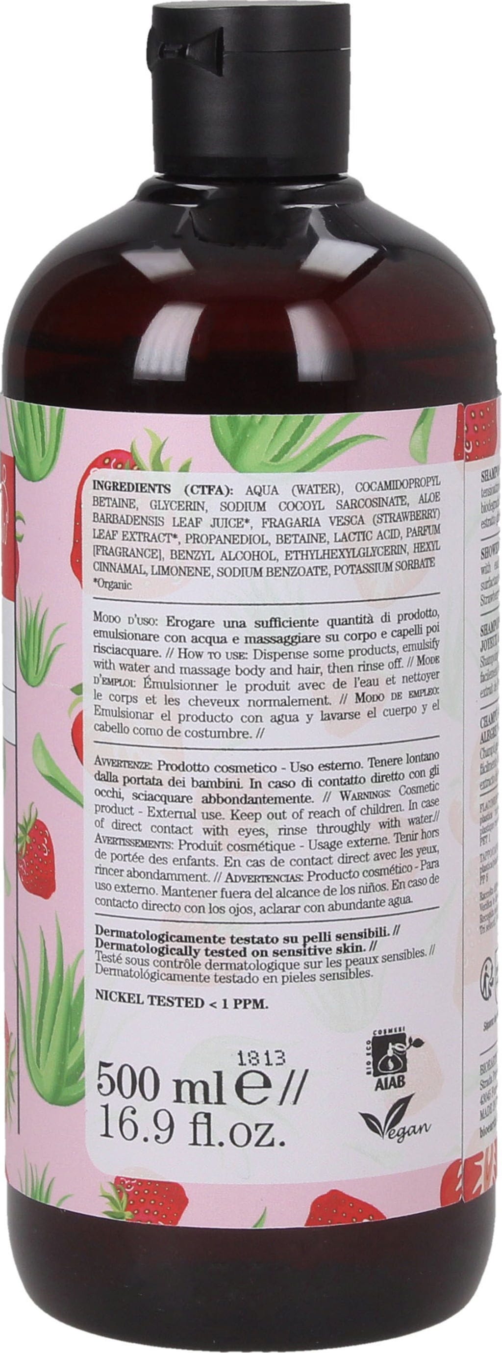 Questo delizioso shampoo e gel doccia 2in1 è un prodotto estremamente delicato sulla pelle di tutta la famiglia. La combinazione dell'aroma rinfrescante delle fragole con le proprietà lenitive dell'aloe offre una soave detersione sia per la cute che per i capelli. È ideale per tutti i tipi di pelle, anche le più sensibili, e contiene esclusivamente tensioattivi delicati e biodegradabili.
