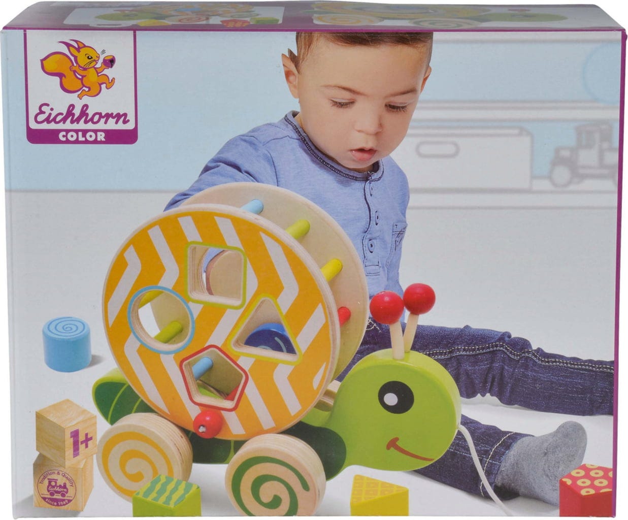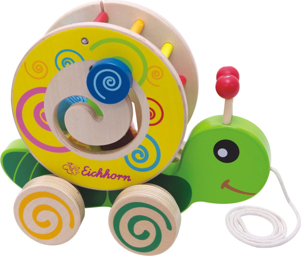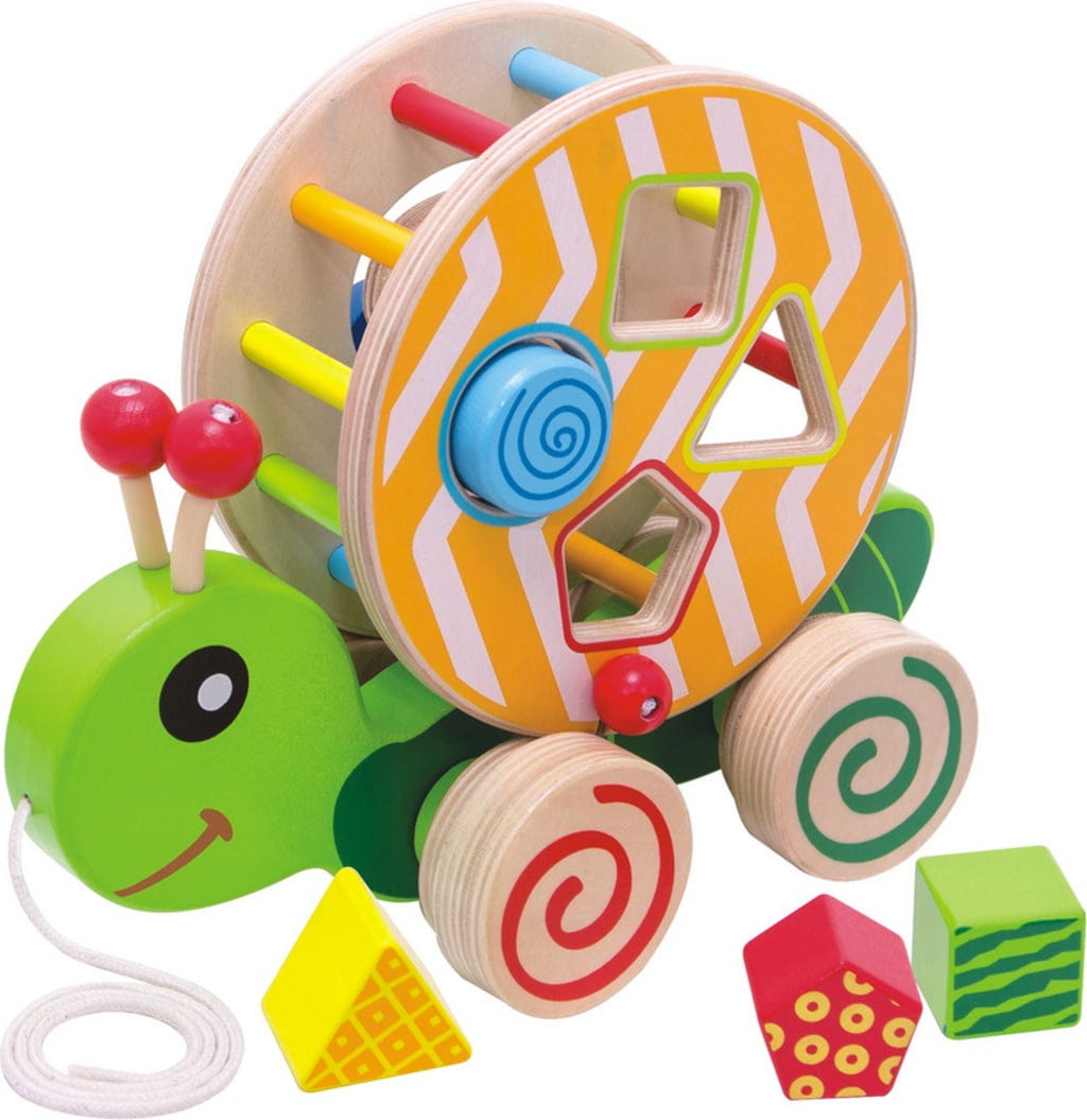 Questo simpatico animaletto mette di buon umore e offre una vasta gamma di opzioni di gioco. Su un lato del giocattolo, i bambini possono provare e sviluppare le loro capacità motorie muovendo il mattone di legno blu attraverso la spirale. Anche i quattro blocchi di costruzione inclusi sono in attesa di essere inseriti negli appositi fori. La tartaruga può essere trainata attraverso la stanza dei bambini con l'apposita cordicella, che risveglia anche la gioia del movimento.