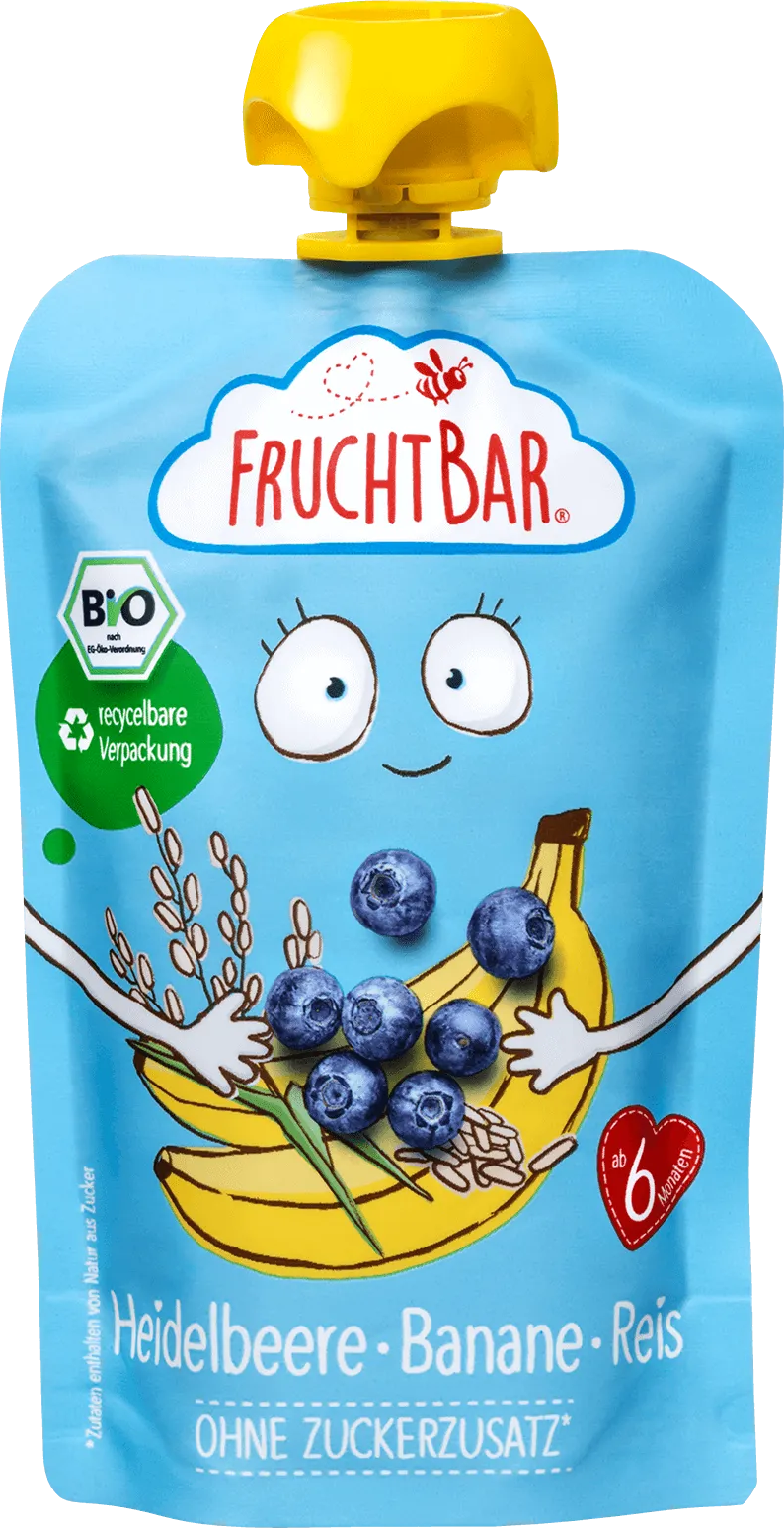 Erfahrungsberichte in Deutsch für FruchtBar Bio Quetschie Heidelbeere-Banane-Reis
