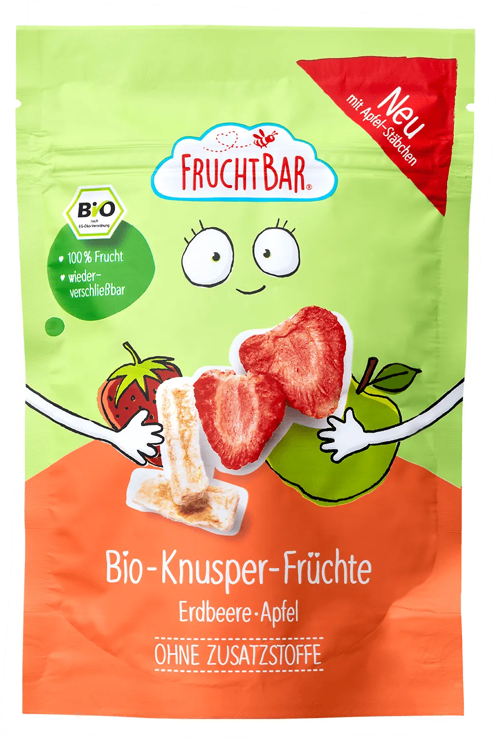 FruchtBar Frutta Croccante Bio - Fragola e Mela, 15 g