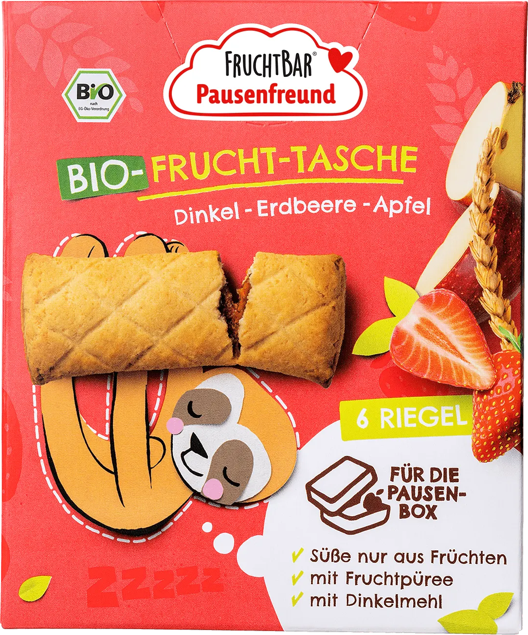 La linea Pausenfreund di FRUCHTBAR è pensata per la merenda dei più piccoli e include snack dolci e salati perfetti da portare con sé, all'asilo, al parco o in viaggio, ma anche da gustare a casa. I fagottini sono costituiti da un croccante biscotto di farro ripieno con una morbida mousse alla frutta. Una vera delizia con la naturale dolcezza della frutta che conquista anche i grandi.