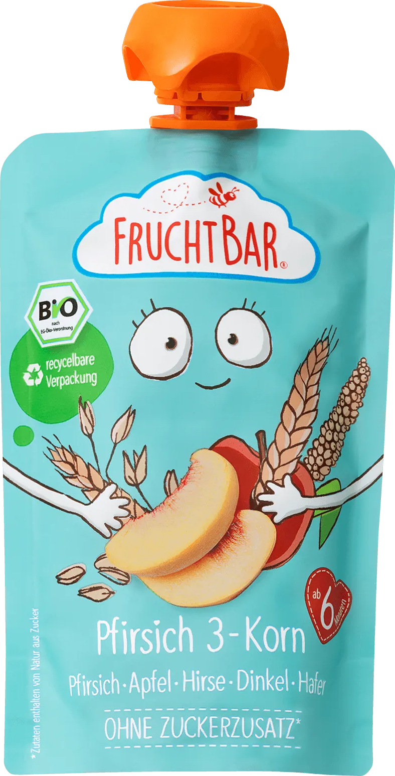 Gli snack da spremere bio di FRUCHTBAR sono la merenda perfetta per i tuoi bambini. A casa, all'asilo o in viaggio, i pratici sacchetti da spremere stanno in ogni tasca e sono sempre pronti a spezzare la fame tra un pasto e l'altro. Le ricette naturali a base di ingredienti biologici di alta qualità non contengono zuccheri aggiuntivi, aromi o conservanti.