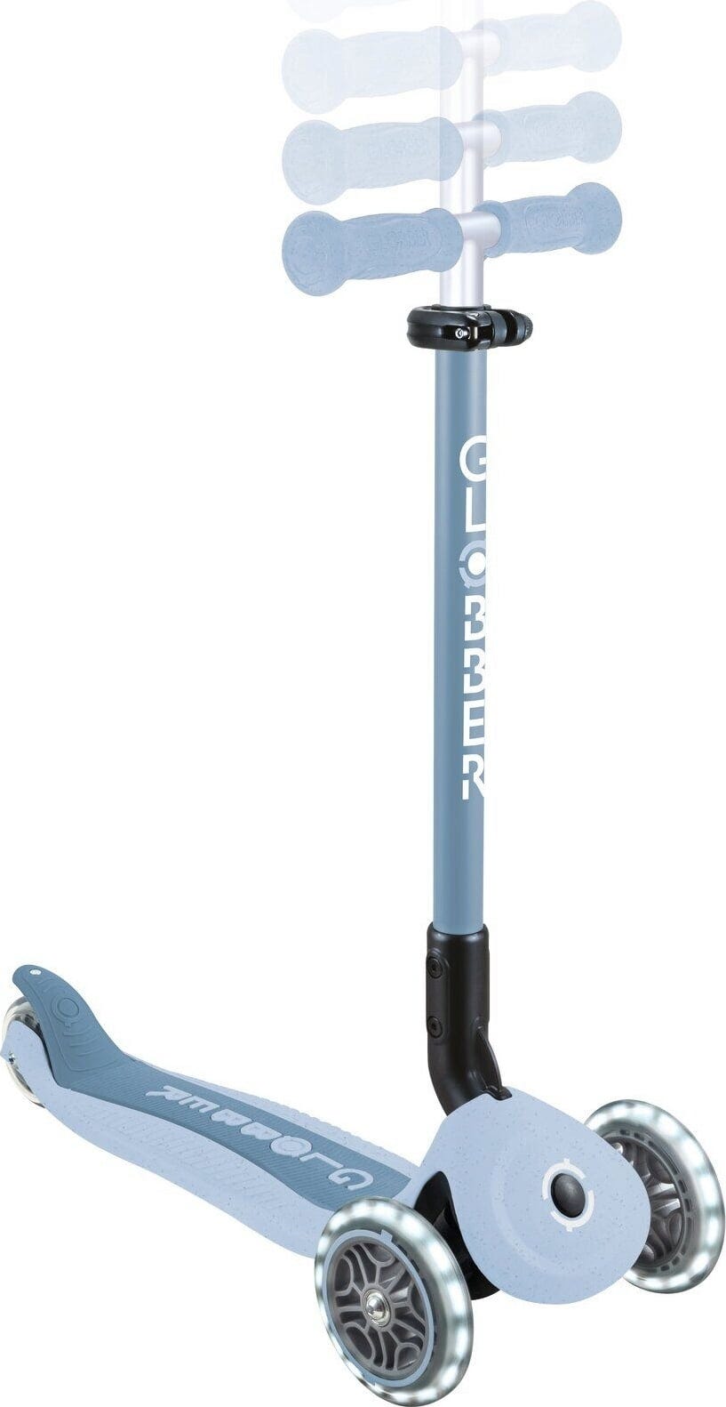 Il monopattino Go-Up Active Lights Eco coniuga ecosostenibilità e funzionalità. I genitori possono contare su un modello 3 in 1 resistente, che si trasforma da monopattino con seduta a monopattino classico, ideale per molti anni a venire.