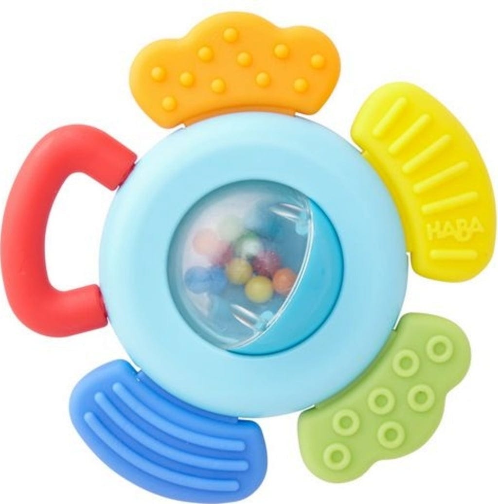Questo giocattolo di HABA è ideale per i primi tentativi dei bambini di afferrare e mordere. Ha una struttura tattile diversa su ogni petalo e stimola anche il senso dell'udito con il suo simpatico rumore.