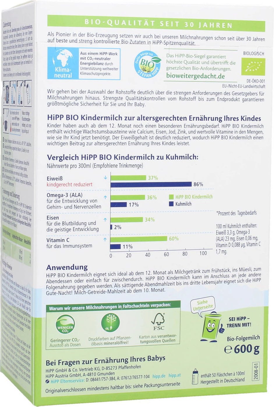| Hersteller: | HiPP GmbH & Co. Vertrieb KG, Georg-Hipp-Str. 7, 85276 , Pfaffenhofen (Ilm), Deutschland, www.hipp.at |