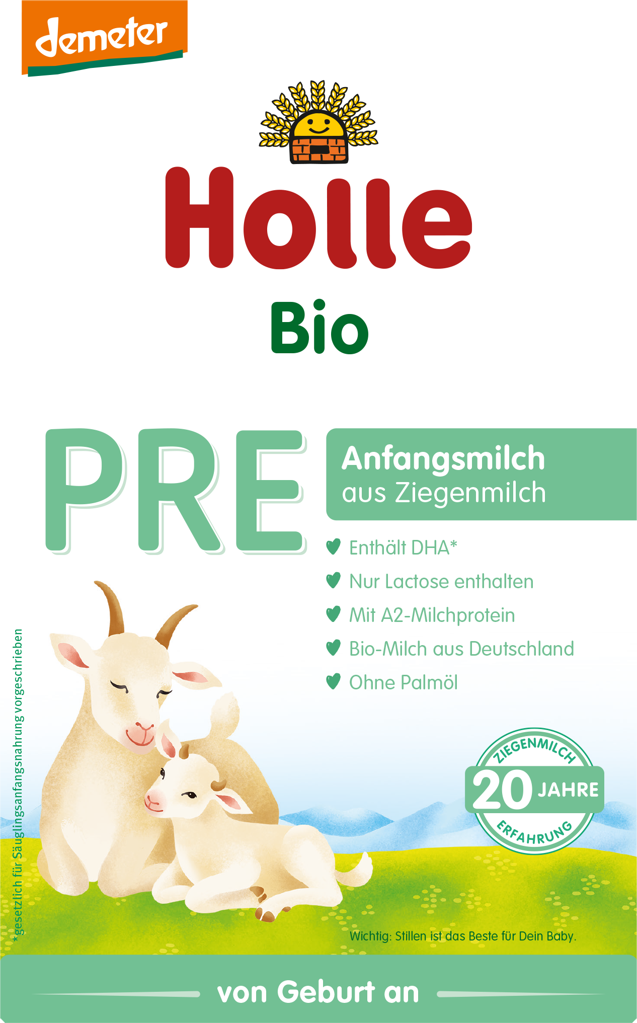 La formula per lattanti PRE a base di latte di capra viene prodotto con latte caprino certificato Demeter e non contiene olio di palma. Adatta per l'alimentazione dalla nascita, quando l’allattamento al seno non è possibile o non è sufficiente. Tutti gli ingredienti sono rigorosamente controllati e garantiscono la massima sicurezza.