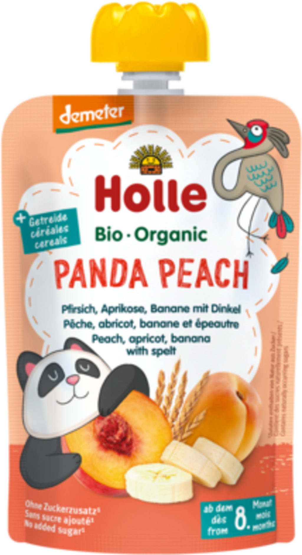 Holle Panda Peach - Pouchy Pesca, Albicocca e Banana con Farro, 100 g