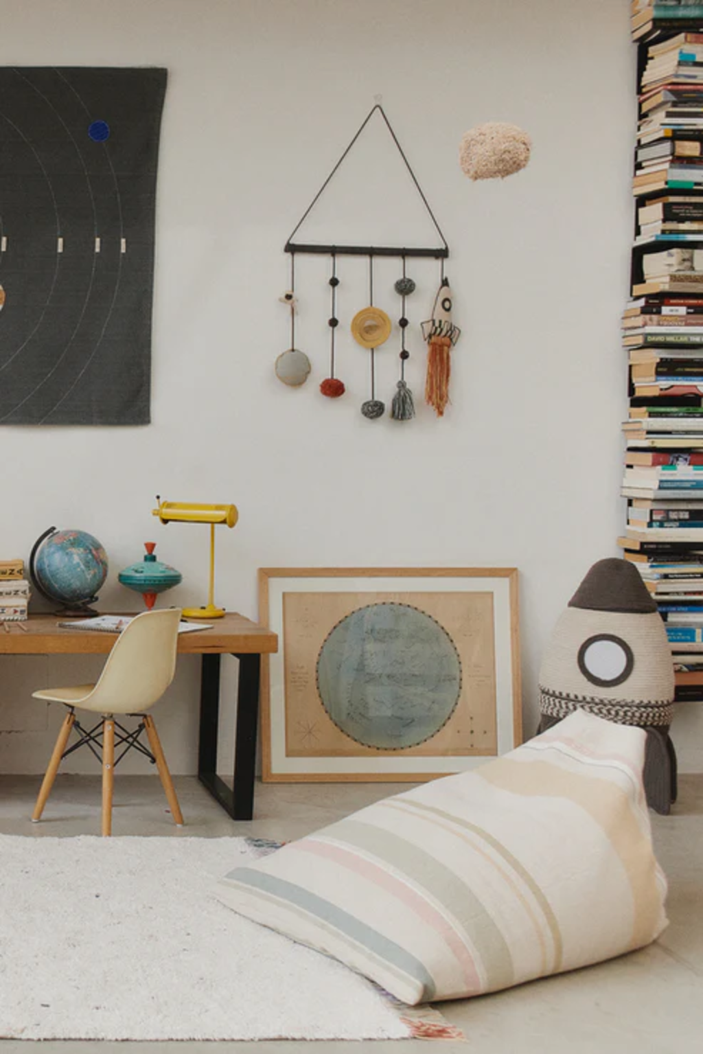 Porta il cosmo a casa tua! La decorazione da parete Cosmos è realizzata a mano e trasforma la cameretta dei bambini e il soggiorno in uno scenario galattico. Con un razzo dettagliato, pianeti fluttuanti e percorsi orbitali giocosi, viene creata un'opera d'arte unica che trasmette un'atmosfera spaziale.