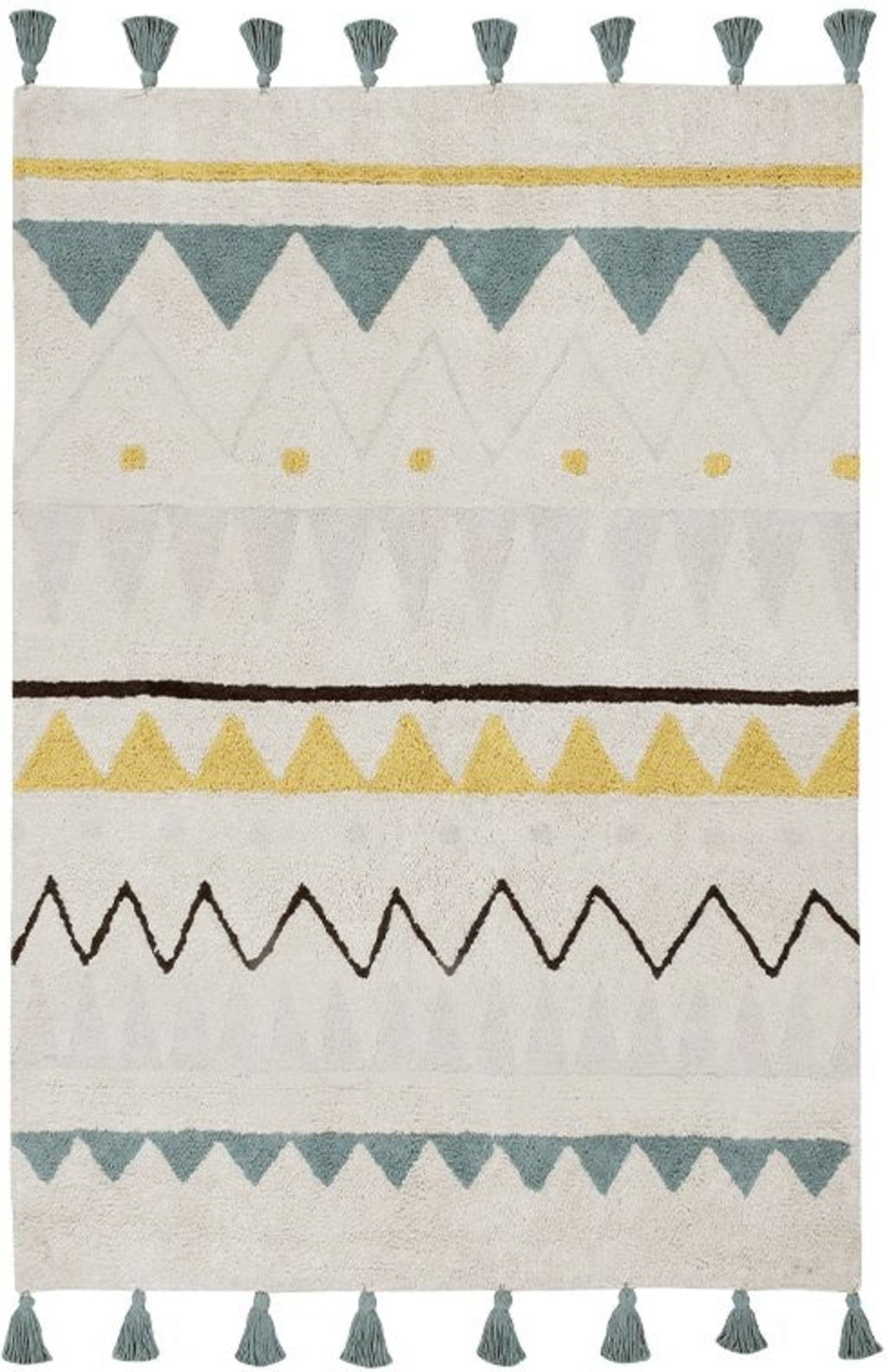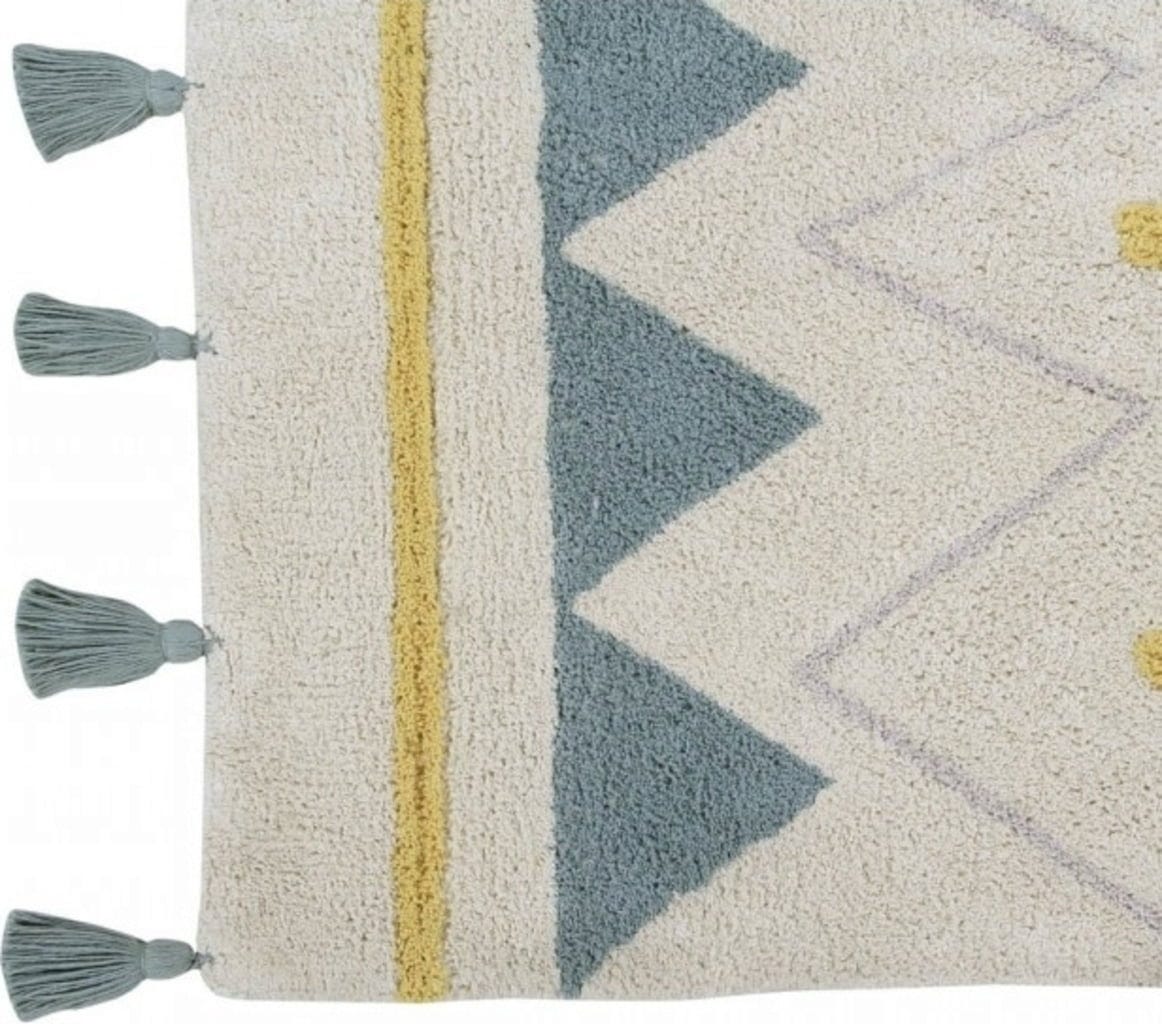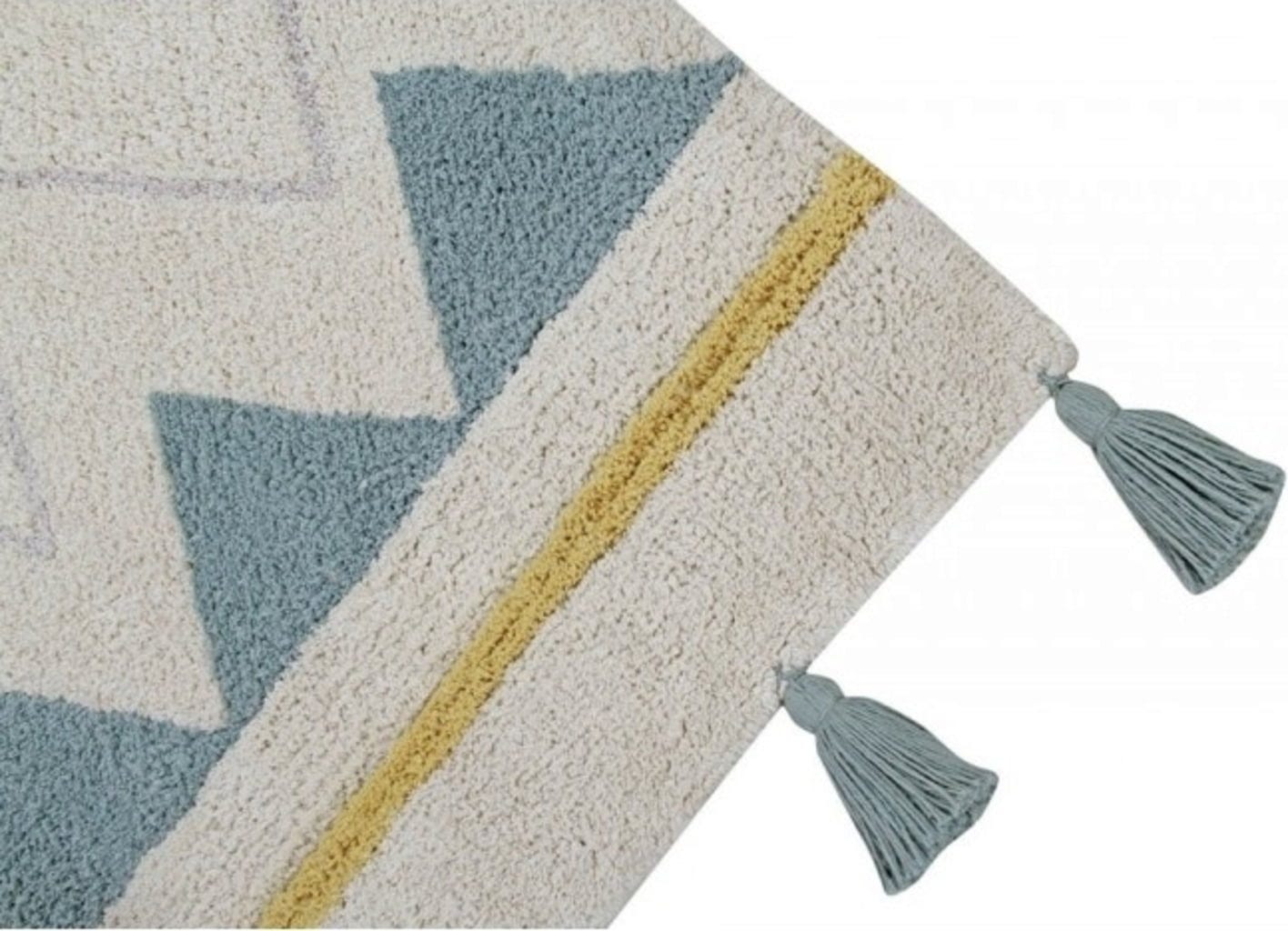Lorena Canals Tappeto di Cotone - Azteca Natural Vintage Blue, 120 x 160 cm