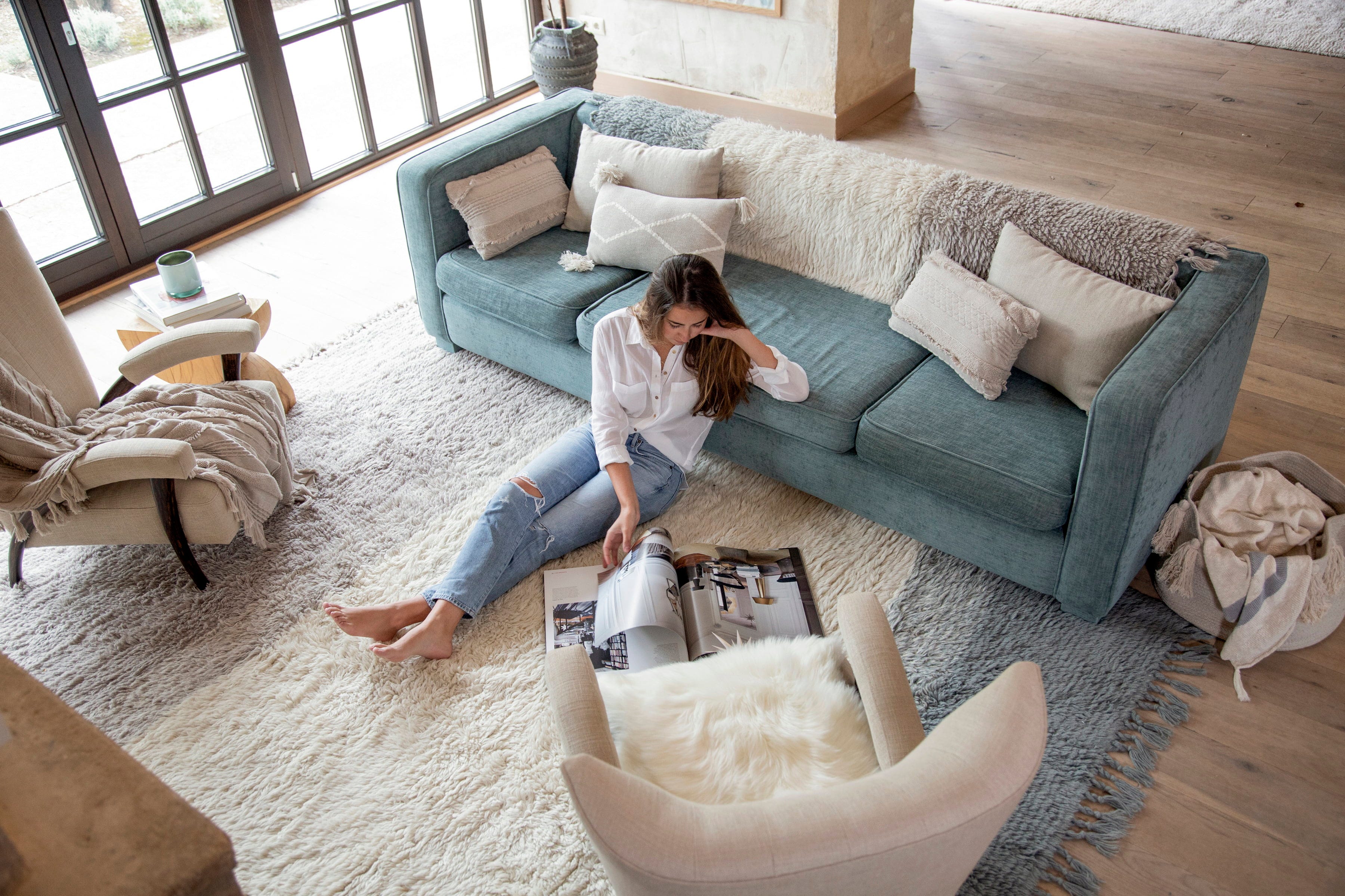I tappeti di Lorena Canals, realizzati in India con lana della più alta qualità e accuratamente lavorati a mano, colpiscono anche per la facilità con cui possono essere puliti e igienizzati. Di' pure addio a polvere, macchie e batteri!