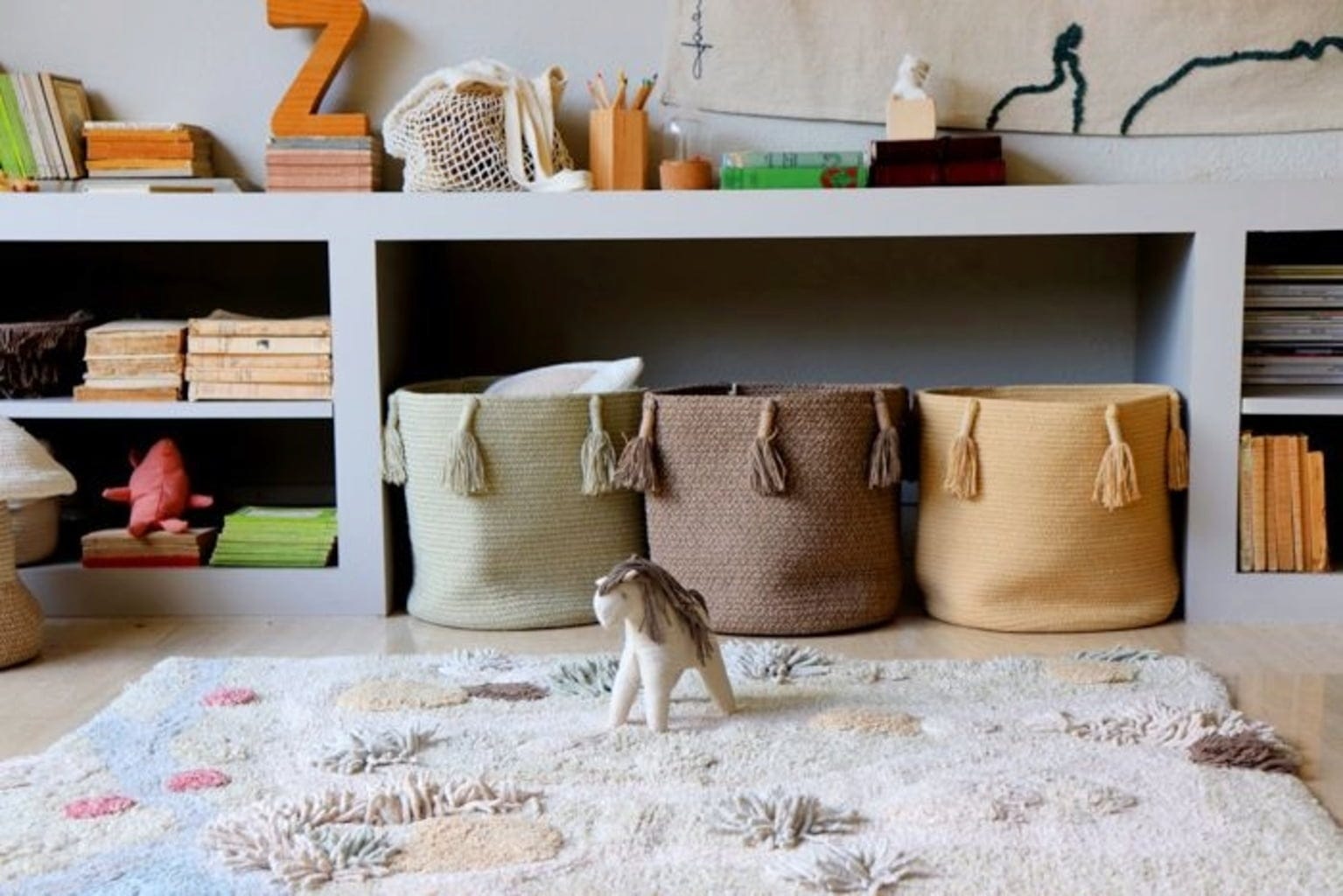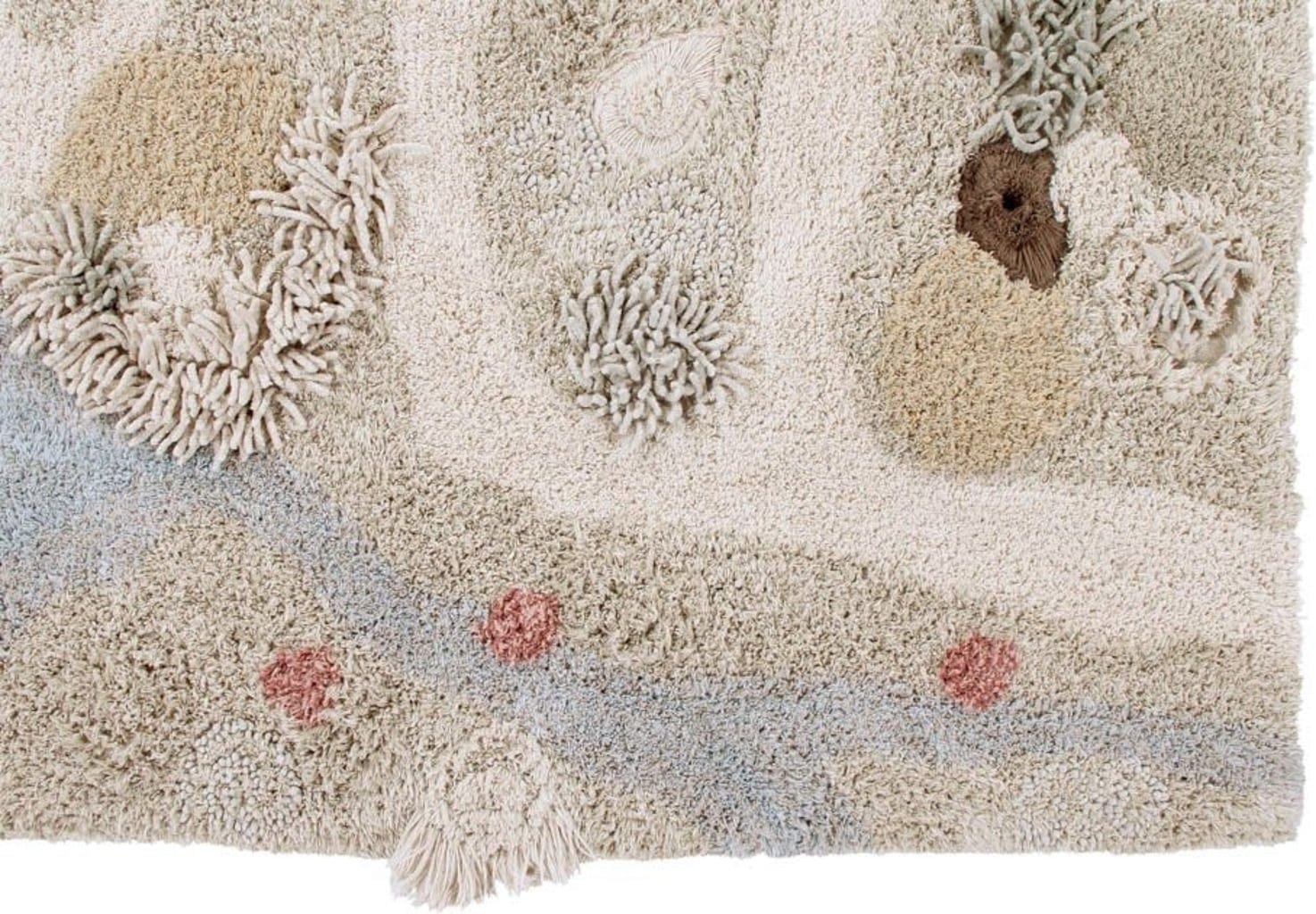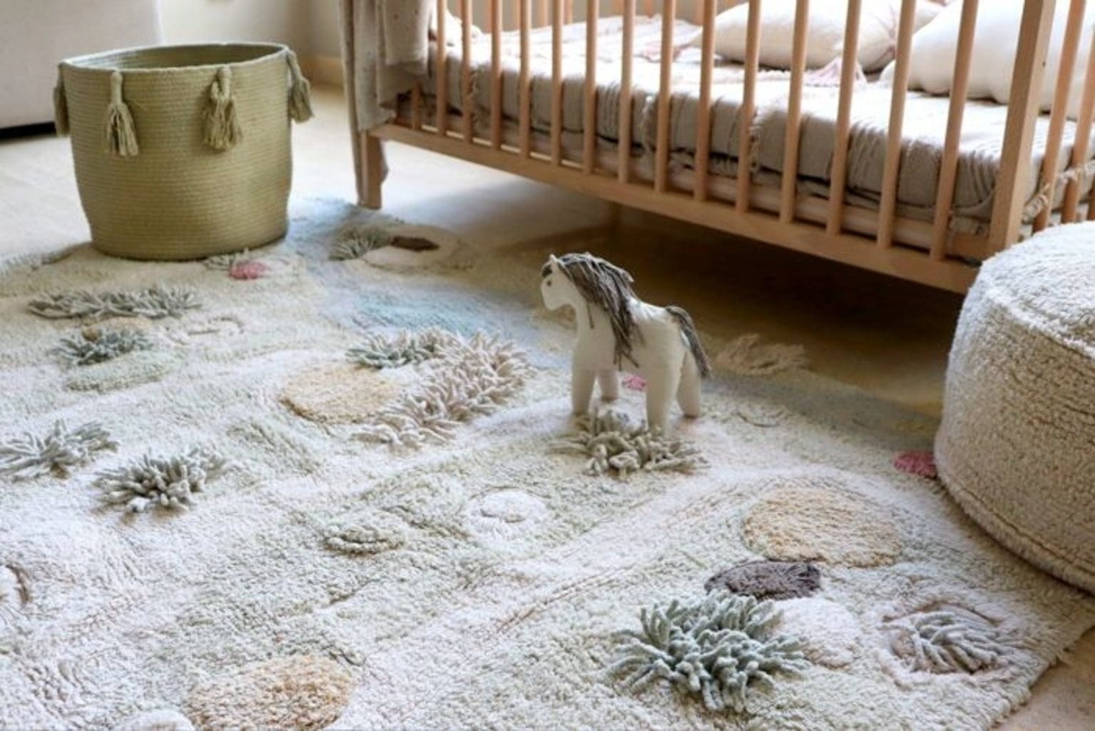 Con questo fantastico tappeto, i pomeriggi di noia e tristezza saranno solo un lontano ricordo! Il tappeto rappresenta una piccola mappa con fiumi e boschi tutti da esplorare con il cavallo di peluche.