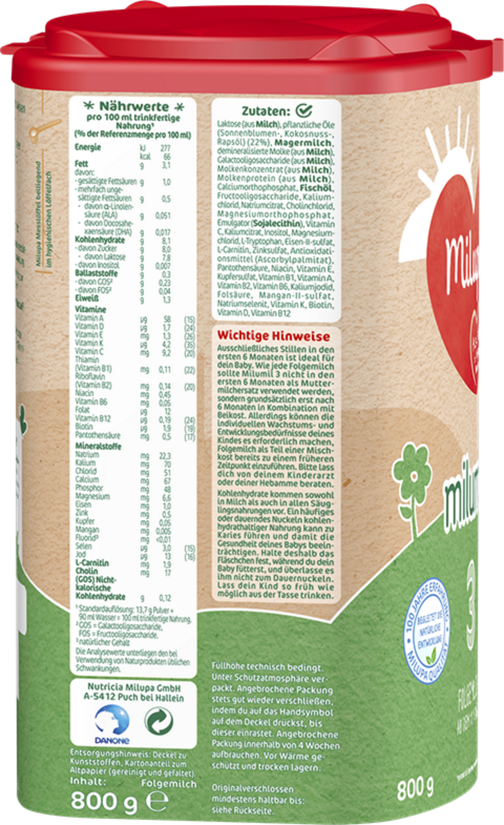 | Operatore del settore alimentare responsabile: | Nutricia Milupa GmbH, Halleiner Landesstr. 58, 5412 , Puch/Hallein, Austria, www.milupa.at |