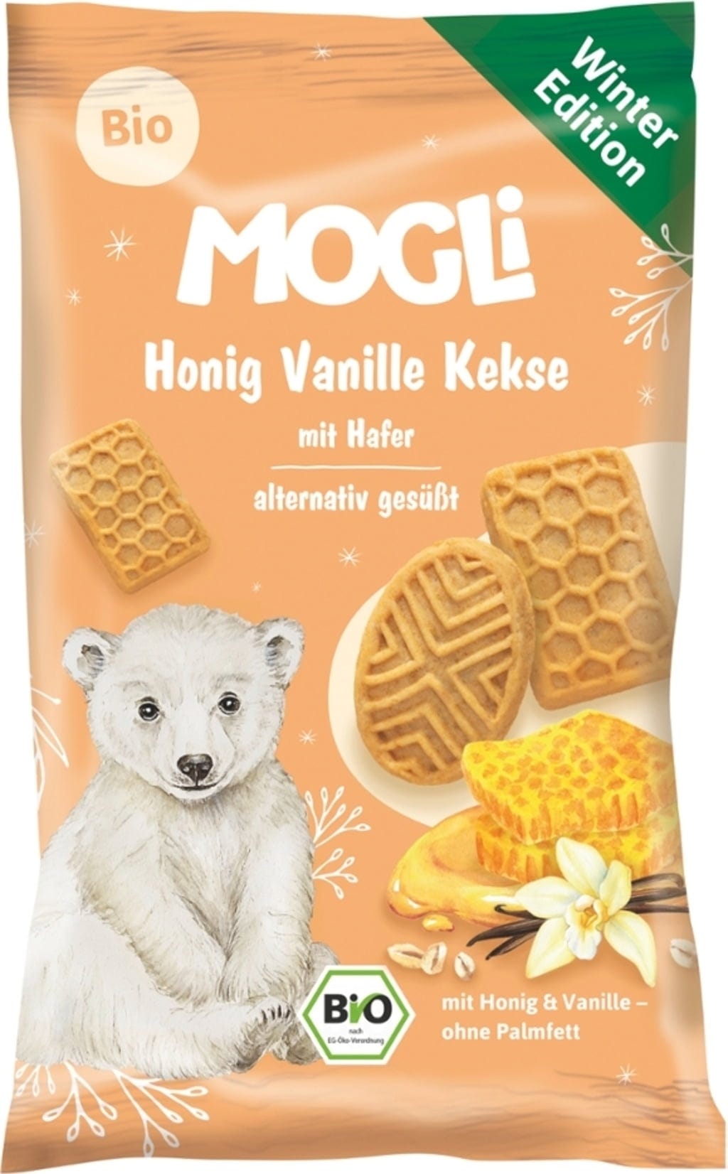 Voglia di un biscotto che ti avvolga al caldo come un maglione invernale? I biscottini biologici al miele e vaniglia di MOGLi sono lo spuntino perfetto per le giornate fredde: deliziosamente profumati, delicatamente dolci e croccanti. Con miele pregiato, vera vaniglia e avena, portano la gioia dell'inverno nella tua vita quotidiana. Naturalmente biologici, senza olio di palma e dolcificati con dolcificanti alternativi, ideali per i golosi di tutte le età.