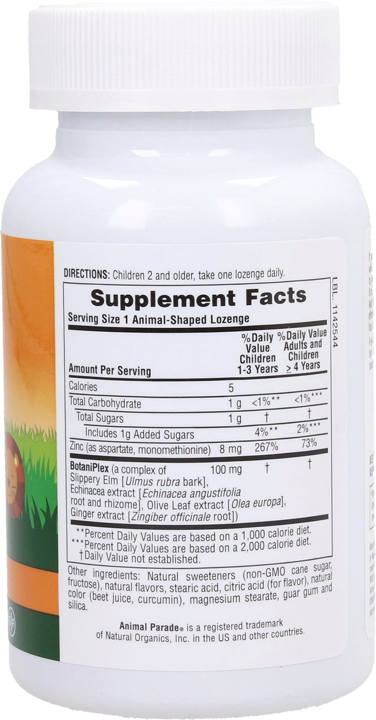 fruttosio, aroma naturale, acido citrico, acido stearico, gomma di guar, magnesio stearato, acido silicico (diossido di silicio), colorante naturale, complesso BotaniPlex (estratto di echinacea, estratto di foglie di ulivo, olmo, estratto di zenzero)