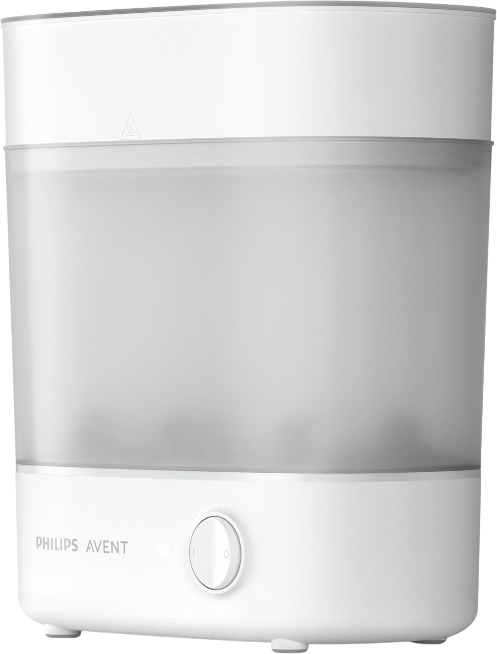Lo sterilizzatore a vapore di Philips Avent garantisce una sterilizzazione affidabile di biberon e accessori. Lo sterilizzatore sfrutta la forza del vapore naturale per eliminare il 99,9% dei germi* – senza l'uso di sostanze chimiche. In soli 10 minuti il ciclo di sterilizzazione è completato. Se il coperchio rimane chiuso, il contenuto resta sterile fino a 24 ore. Questo ti offre la sicurezza di avere sempre a disposizione accessori puliti.