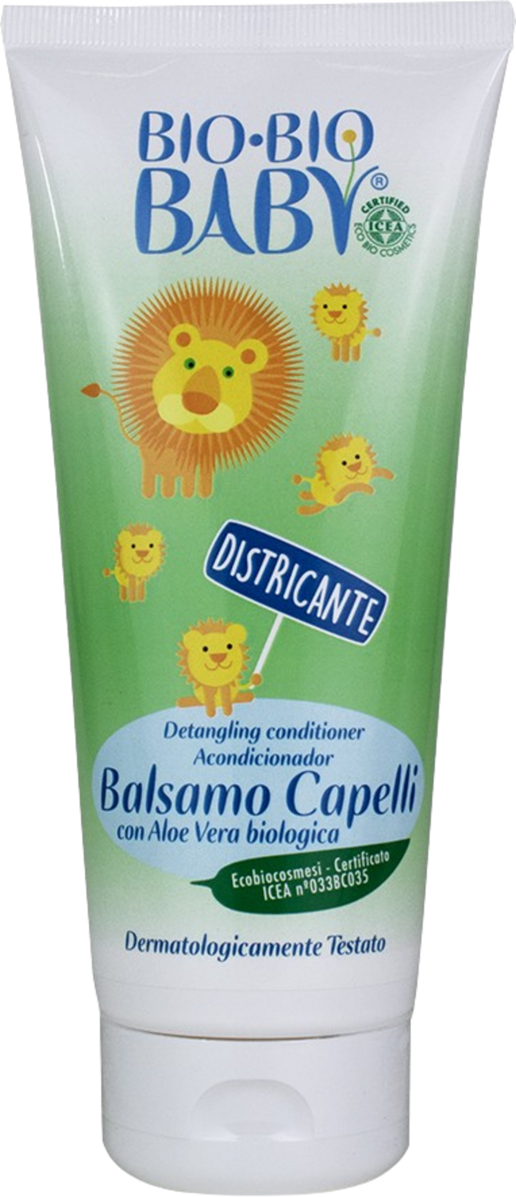 Il balsamo districante Bio-Bio Baby contiene aloe vera biologica. È un prdootto adatto a tutti i tipi di capello, ha un effetto riequilibrante e districante ed è ideale anche per i neonati e i bambini, in quanto non solo protegge le chiome più delicate, ma evita di infastidire i più piccoli quando li si pettina! Non brucia gli occhi e scioglie i nodi senza stressare o tirare i capelli. Ha un'azione rigenerante, restituisce luncentezza e morbidezza.