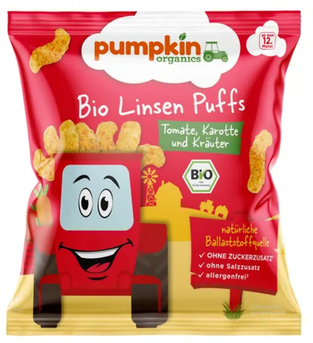 Pumpkin Organics Puffoletti di Lenticchie Bio - Pomodoro, Carota ed Erbe, 20 g