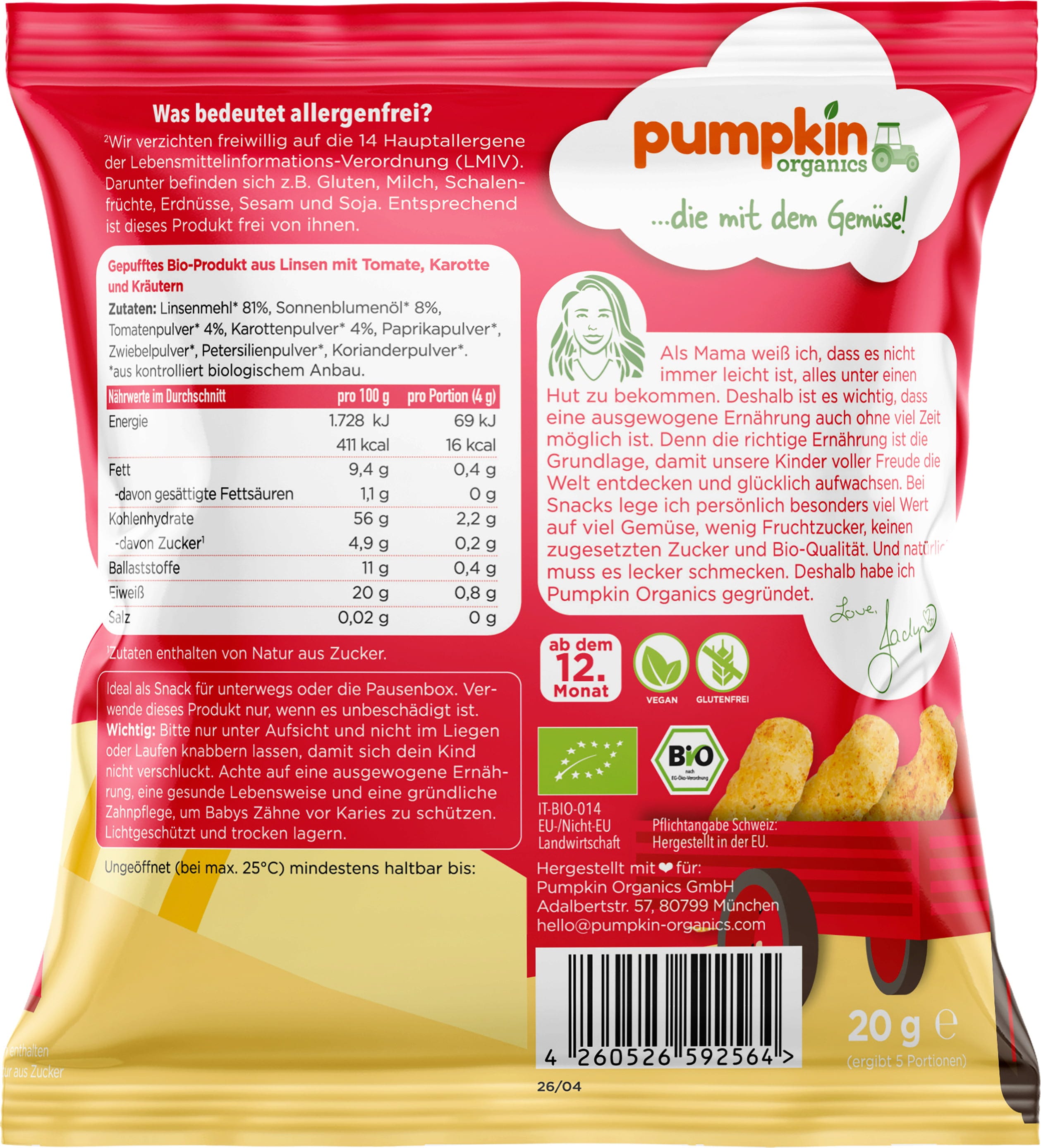 | Operatore del settore alimentare responsabile: | Pumpkin Organics GmbH, Adalbertstr. 57, 80799, München, Germania, pumpkin-organics.de |