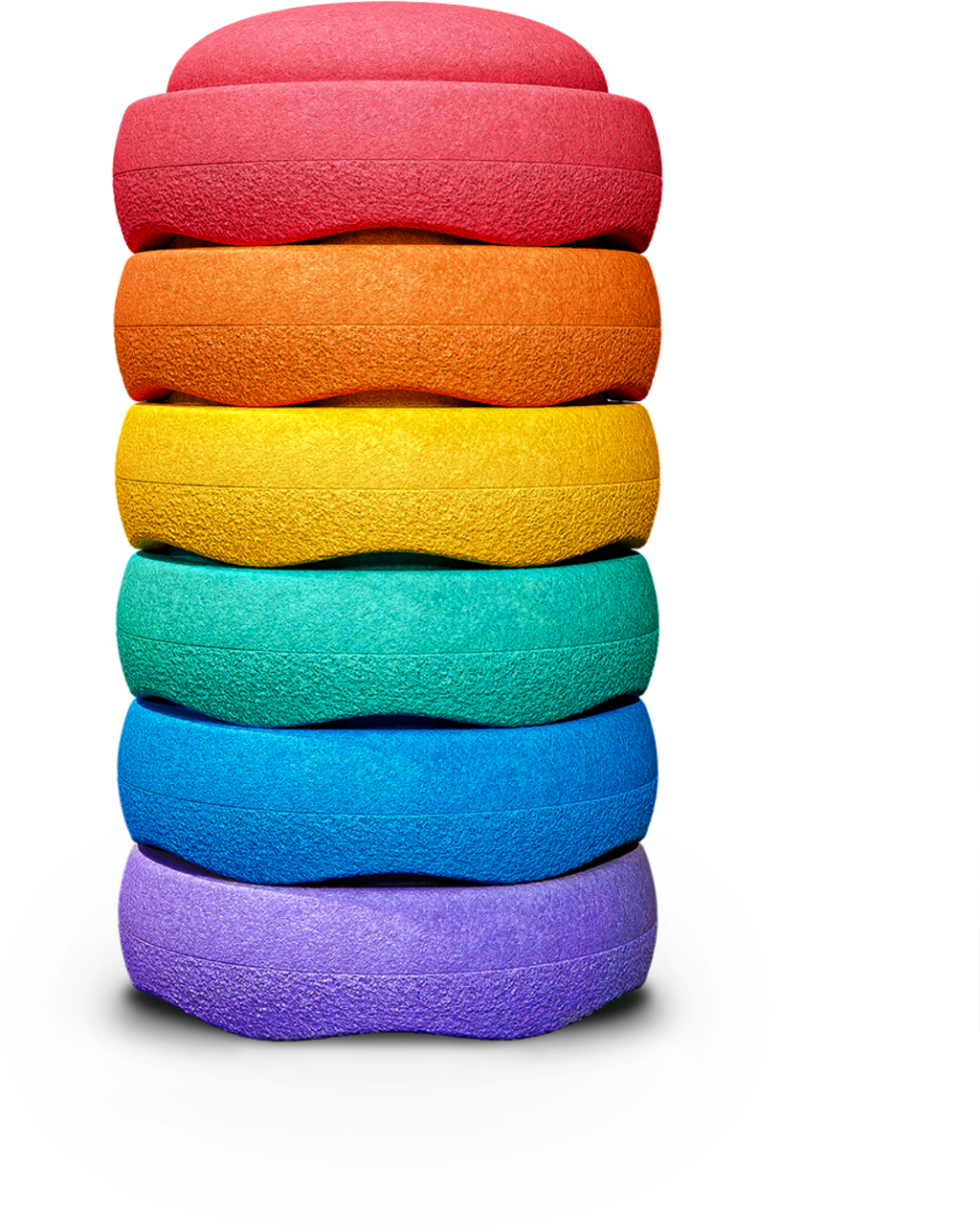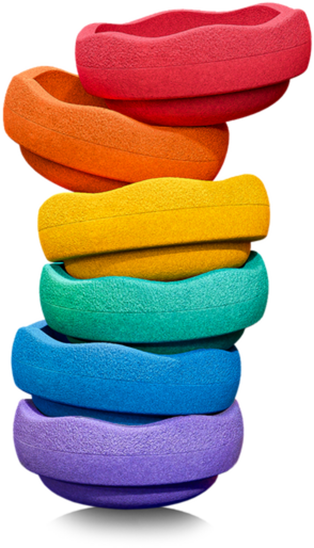 Contenuto: 6 blocchi impilabili nei colori dell'arcobaleno.