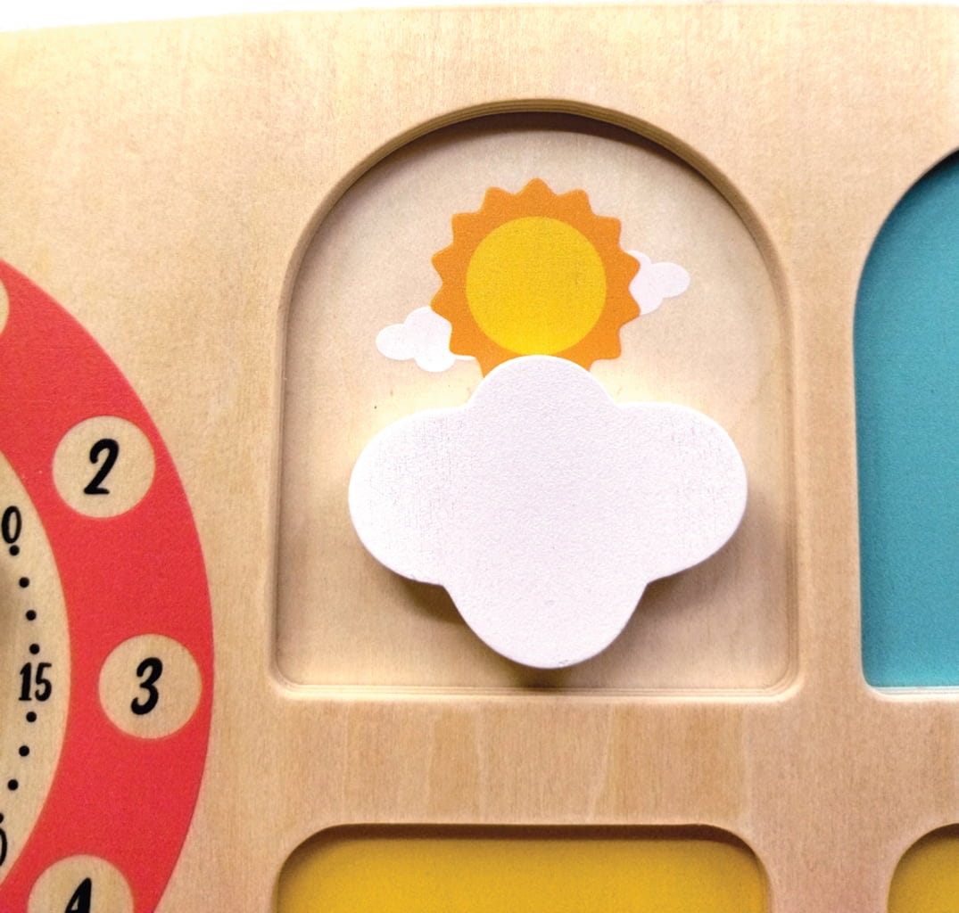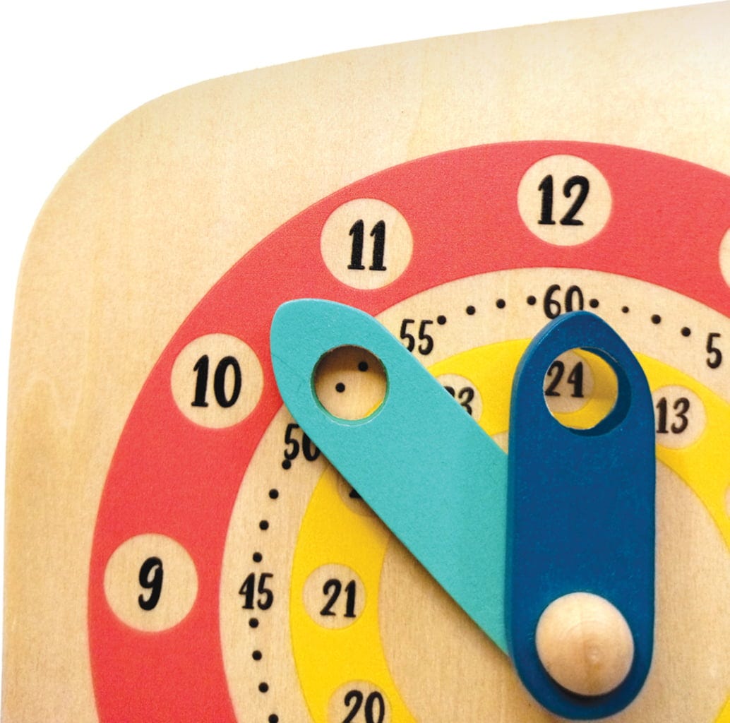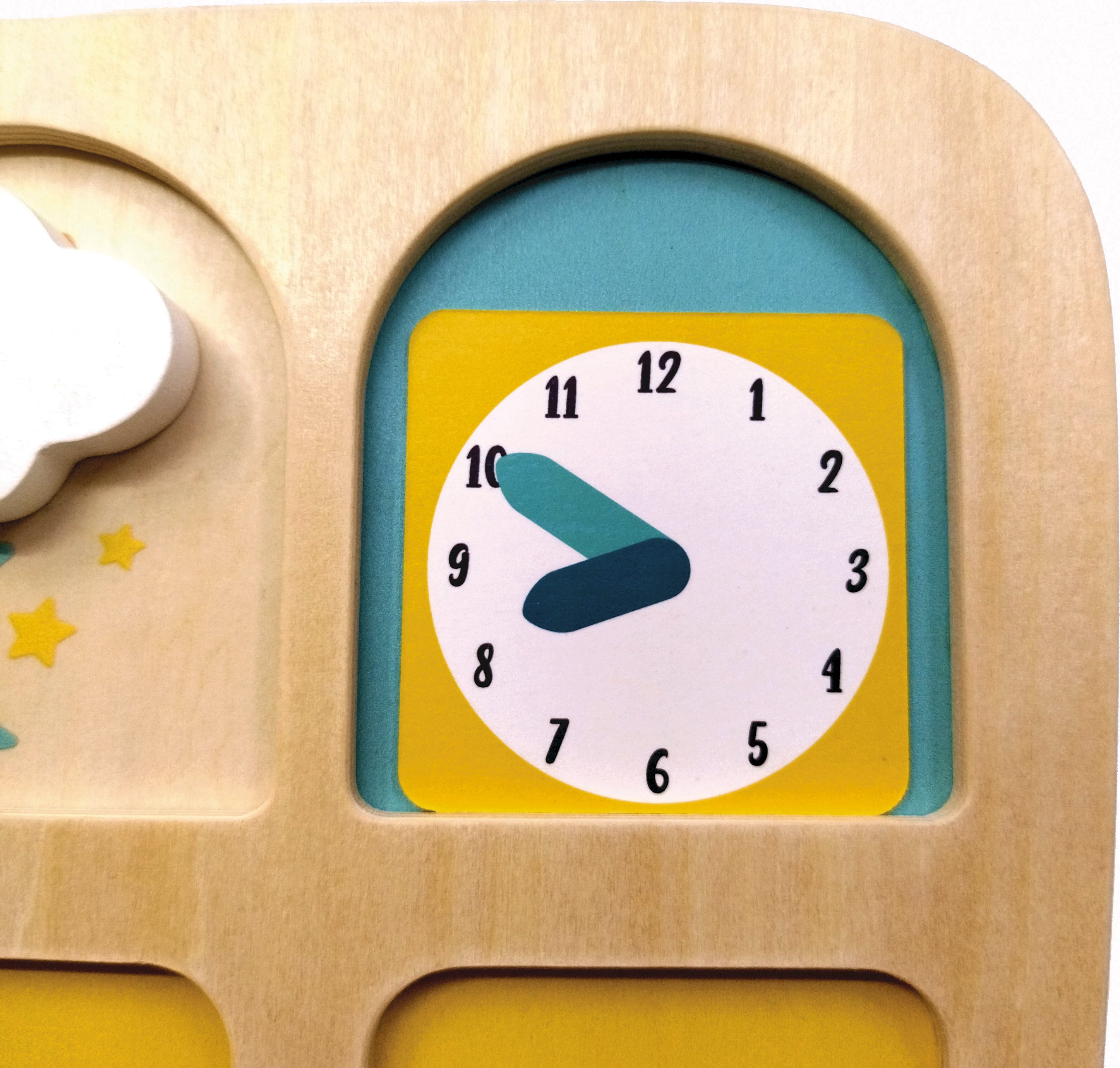 Per favore, puoi dirmi che ore sono? Con questo giocattolo educativo risolverai il mistero delle lancette grandi e piccole. Inoltre, grazie a 15 tessere numeriche, puoi anche familiarizzare con il display digitale. 24 schede servono come esempio e sono assegnate a diverse parti della giornata in base al loro colore. I due piedini di supporto consentono di giocare in modo confortevole.