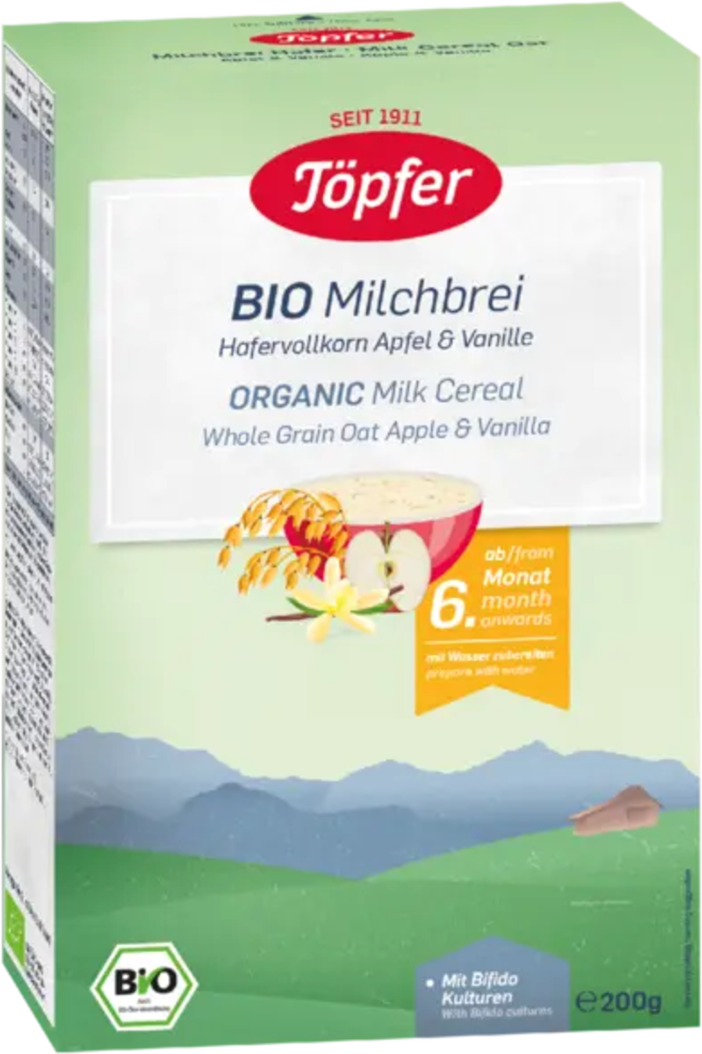 Questa deliziosa pappa lattea biologica di Töpfer è adatta per bambini a partire dai sei mesi ed è un complemento ideale al piano di svezzamento. Con mela in fiocchi e una sottile nota di vaniglia, la ricetta ha un gusto fruttato che delizia non solo i palati dei più piccoli, ma piace anche ai bambini più grandi e agli adulti. Realizzata con latte biologico e arricchita con colture di bifido, questa miscela offre una combinazione armoniosa, deliziosa e varia. Si può semplicemente gustare da sola oppure utilizzarla come base per altri deliziosi abbinamenti creativi, adattandola alle personali esigenze del tuo piccolo.
