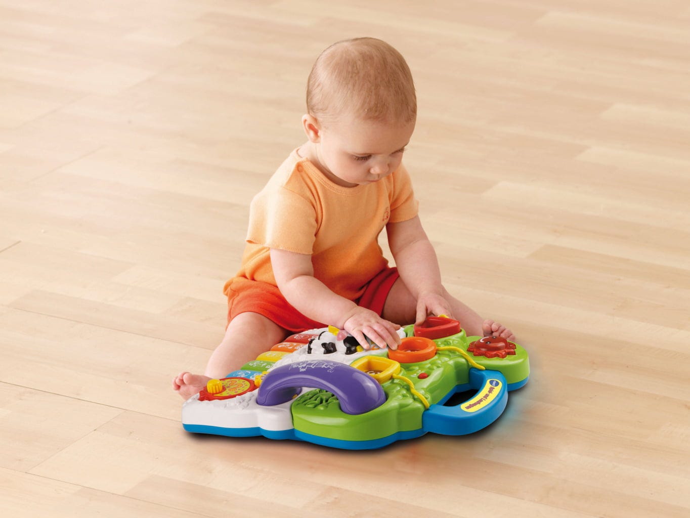 Questo divertente giocattolo 2 in 1 è un pratico compagno per aiutare i bambini a muovere i primi passi. Anche se i piccoli esploratori preferiscono gattonare, il tabellone di gioco rimovibile con i suoi numerosi pulsanti, rulli e lembi offre un ottimo intrattenimento e aiuta ad ampliare il vocabolario in modo giocoso.